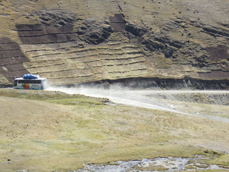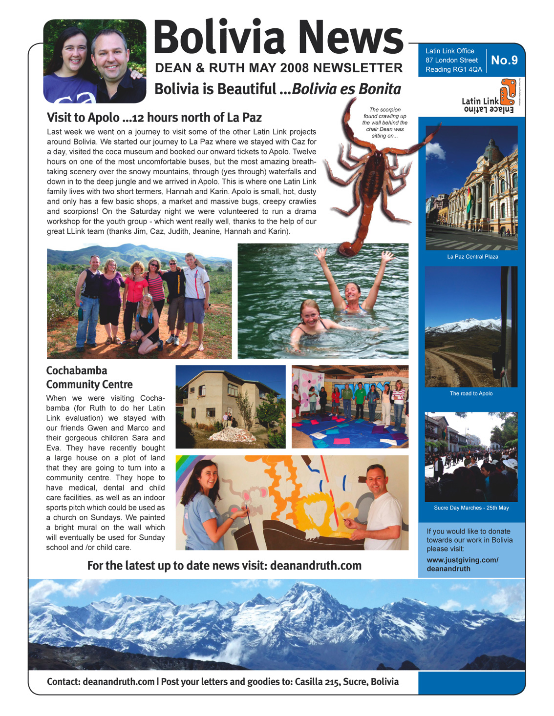 We had the wonderful opportunity to visit some of the other LatinLink members last week as we traveled around the country. We stopped off in La Paz first, where we organised our onward trip to Apolo. Apolo is not a very well known town in Bolivia but definitely worth a visit. The journey was 12 hours north on a small cramped bus. We left La Paz at about 7.00 am just as the sun was rising. We got an amazing view of Mount Illimani as we climbed out of the basin up to the Alti-Plano. Driving through El Alto (a huge district of La Paz ) at that time of the morning was freezing cold and our hearts were touched as Caz and Judith told us about the street boys who have to live out here and are taken in by various rehabilitation projects. We passed groups of children huddled together surrounded by the desperately sad signs of glue sniffing, which they do to try and numb themselves from the cold. After traveling for about an hour we were surrounded by beautiful mountains on one side and the deep blue of Lake Titicaca on the other side. It is awesome. The bus began to climb even higher and soon we saw llamas and snow either side of the road. The Apolobamba mountain range is really remote and therefore unspoilt with just a few communities dotted around. The road ( untarmaced and constantly bumpy) began to twist and descend down in to the jungle. At times I was so scared to look over the edge as the drop was so deep and we were so close to the edge. But the views and waterfalls were spectacular. Arriving in Apolo at about 8 pm we pealed ourselves out of the bus and had a long needed stretch, before being hugged and kissed by Hannah and Karin who we were going to be staying with.