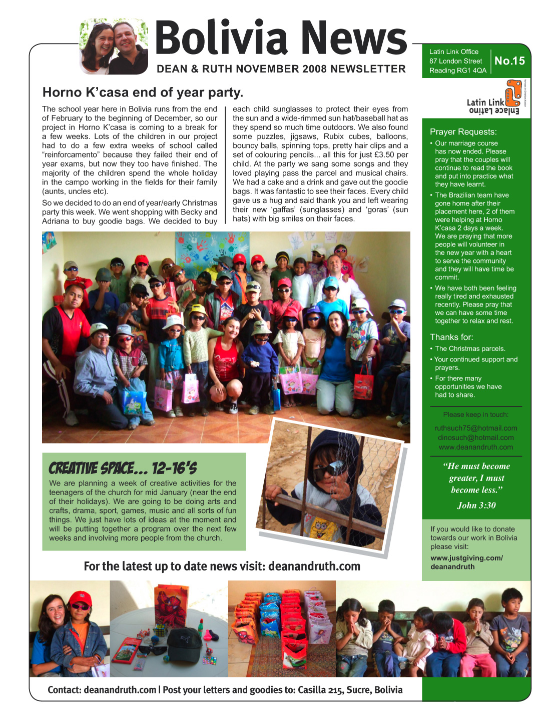Newsletter No. 15 Posted on December 1, 2008December 1, 2008 by deanandruth Here is our newsletter for all we did in November. Hope you enjoy reading it… you’ll need to click each page separately to open it and click again to enlarge. Please leave a message as we love hearing from family and friends. Page 1 page 2 Share this: Click to share on Facebook (Opens in new window) Facebook Click to share on X (Opens in new window) X Like Loading... Related Published by deanandruth View all posts by deanandruth