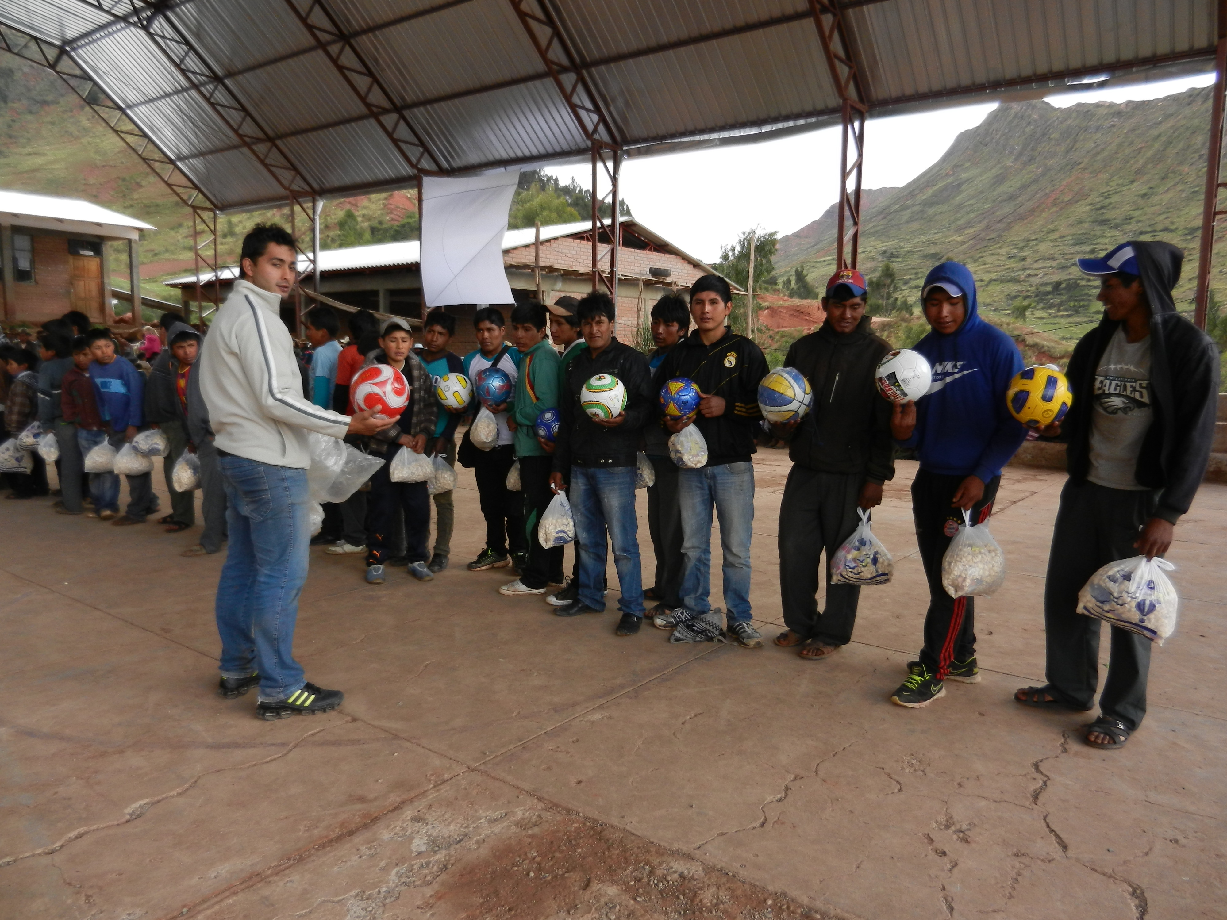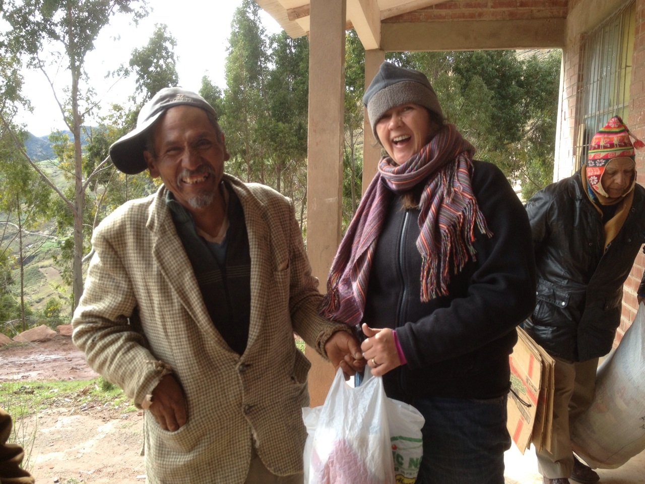 We had a quick lunch and got ready for games and dramas, which we were involved with. All the children then lined up and we gave each one a goodie bag, with toys, balls and snacks etc. Every adult got given a blanket and a shawl. At about 5.00 we served hot chocolate and these yummy fried aniseed doughnut things. Then after a gospel message was shared by our Quechua pastor; we arranged all the donated clothes in long lines along the playground and there was a free- for- all rummaging for clothes. Words cannot really express the joy and blessing that was shared. Then every family was called forward and they received a plastic bowl, full of things for their family. Earlier in the day I had gone to one of the houses to borrow a stone to grind peanuts. They had no furniture apart from a basic plank and straw beds with a fire smouldering in the corner. I think about our lovely little house back home. Our garden and all the “stuff” we have collected. It was humbling.