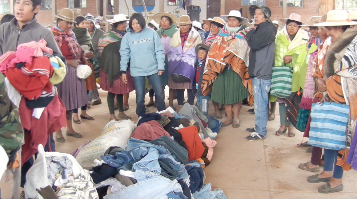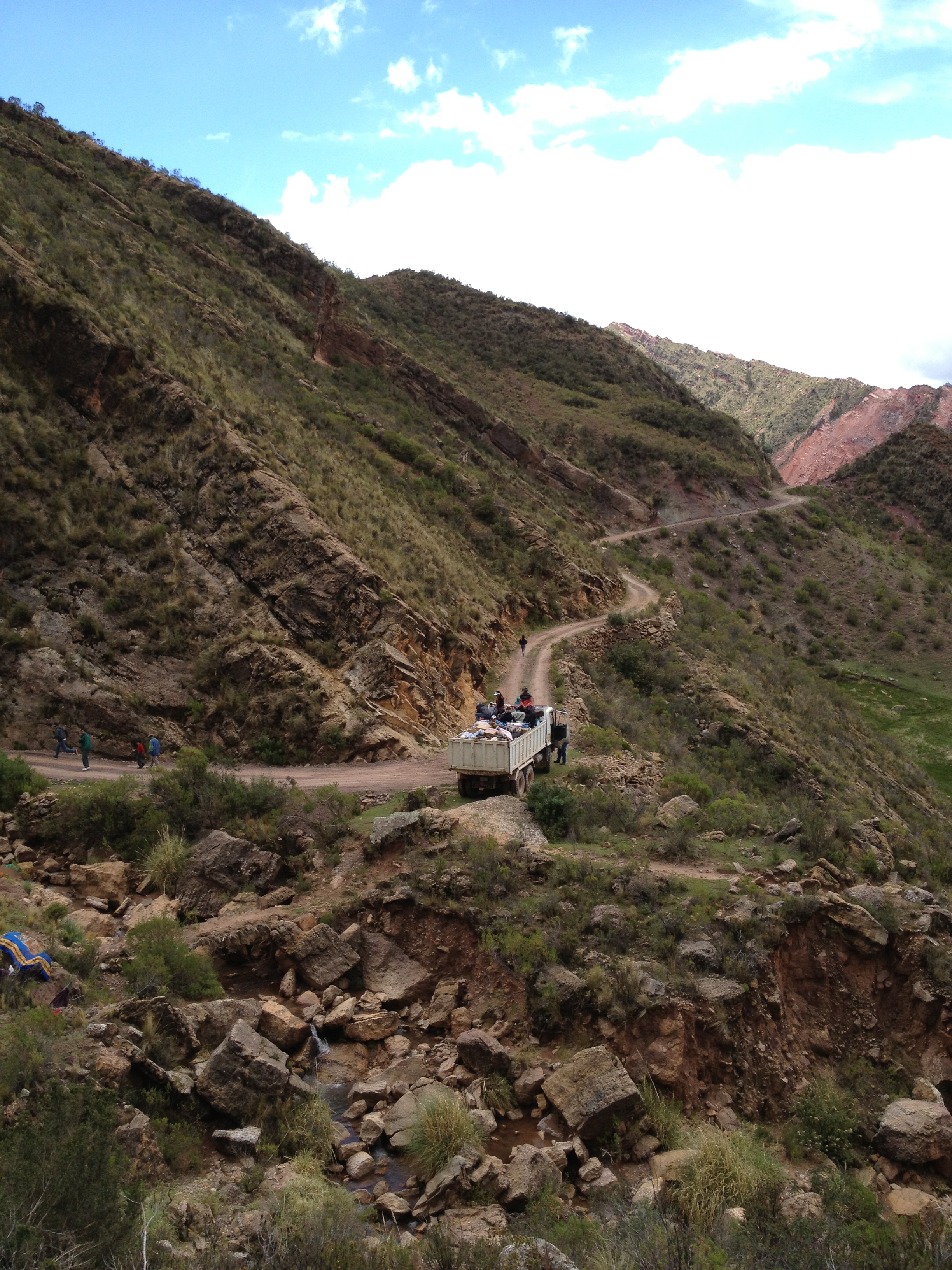 Boxing Day. 6.30 am. We arrived at church with our rucksacks and sleeping bags and soon were busy lifting stuff onto the back of a cattle truck (called a caminon). More and more people arrived – Bolivians are without exception always late- until the whole group of 45 had gathered. Enormous saucepans, a cooker, a generator, 20 + sacks of clothes! shoes, huge sacks of toasted maize, food, buckets, bottles of gas, ECG machines… You name it… We took it.