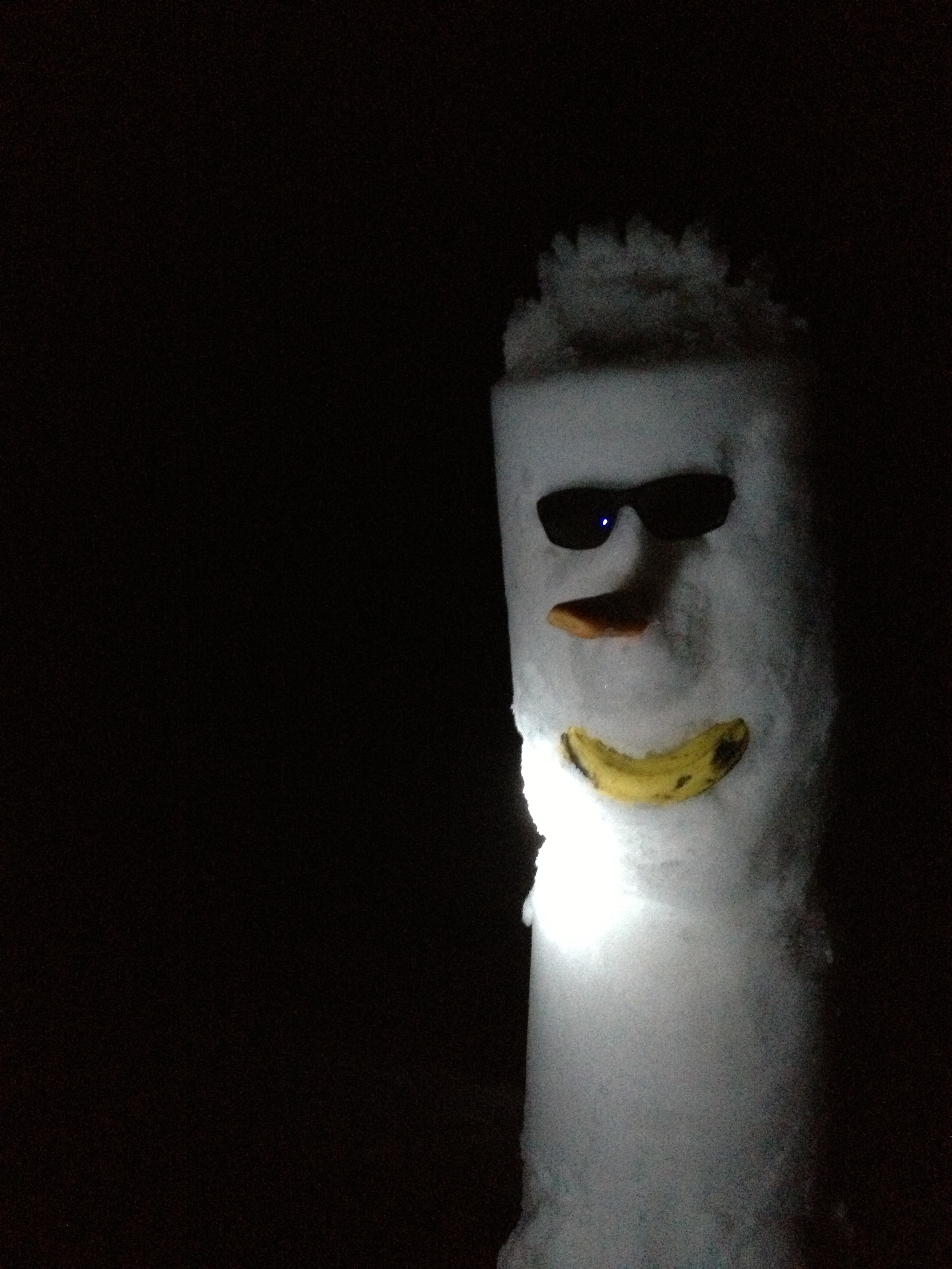 That night there was a hail storm – about two inches of hail stones. So we built a snowman. It was so cold. Bitter, but we all snuggled down and got some sleep.