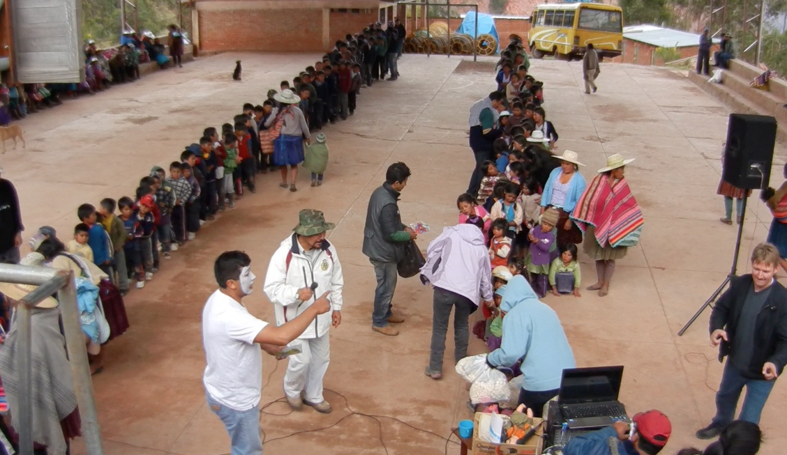 The bus journey to Lapiani took six hours. Roads like ribbons, twisting on the sided of the mountain, deep gorges and ravines which made you look away. The famous “death Road” in La Paz was nothing in comparison to this… We arrived mid afternoon and started unpacking all the supplies. We had been given permission to use the school. The three classrooms became our kitchen, girl’s bedroom and boy’s room. The primary classroom was converted into a doctors surgery and dentist room. People started working frantically. Setting up the generator as there was no electricty, wiring up light bulbs, carrying buckets of water from the standpipe, boiling water and sweeping the yard. It was crazy. A couple of local people appeared and looked at us with bemused expressions. It was really remote. Only a handful of mud brick houses with tin roofs. We could hardly believe that “hundreds of people” would come the next day.
