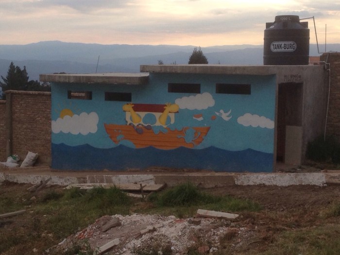 We were asked to paint a mural at the children’s centre called “Centro de Amor y Amistad”. From the selection we gave them, Joanna and her family chose a Noah’s Ark design. We have been there a few times and it is almost finished. Probably the largest wall we have painted to date. There are about 110 children who go there every day to do their homework and have a healthy snack. Everyday we get asked 110 times by the children with huge smiles, “Estan pintando?”… Are you painting? You can see the progress in the photos below.