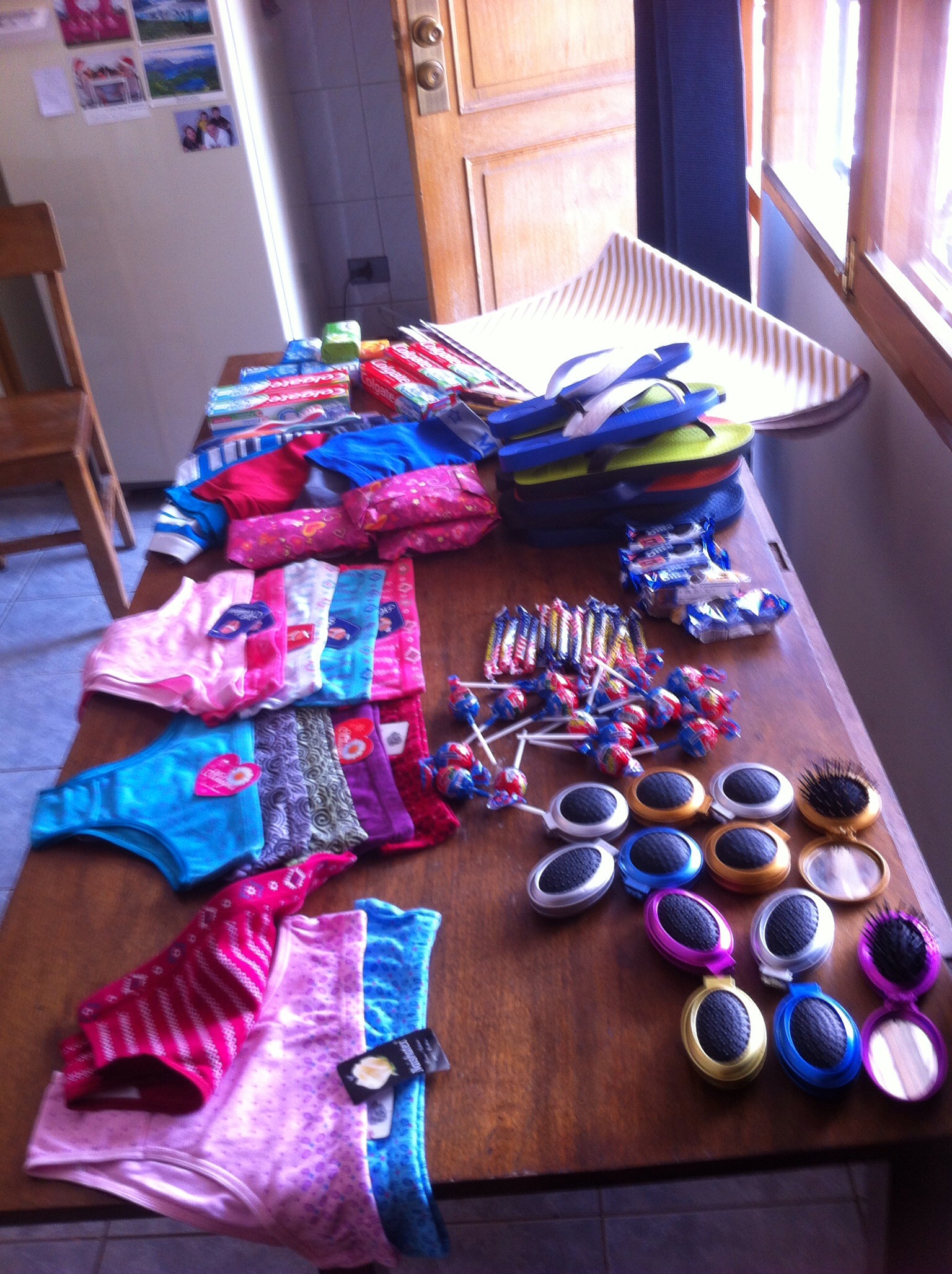 Thank you for everyone who has sent us donations for the Christmas boxes we have organised for the kids in Mosojyan and Cometa. We have been shopping in the cancha and been busy wrapping gifts and essentials such as boxer shorts, flip flops, toothpaste and soap, knickers and hairbrushes along with a few goodies.